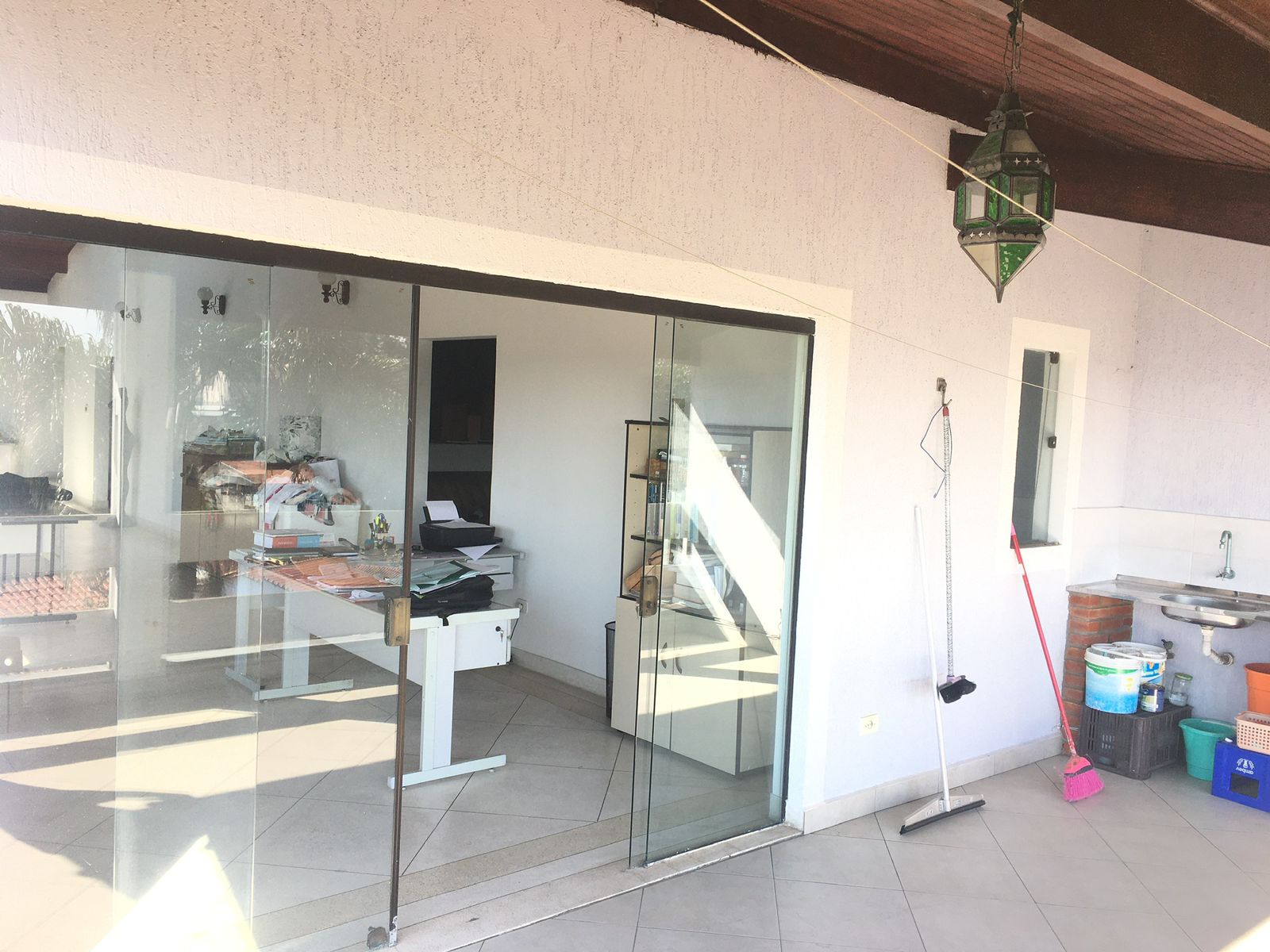 Linda casa tipo sobrado com 3 suítes, garagem para 4 carros, sala com lavabo, sala de jantar, cozinha, amplo escritório com lavabo e sacada com vista para área verde, lavanderia fechada, canil, área de confraternização com piscina, salão de festas e banheiro.